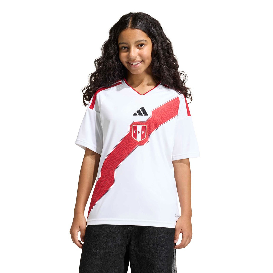 Authentic adidas Peru Home Youth Jersey featuring the official national team design. This lightweight jersey is crafted for young fans and players who want to represent Peru with pride. The classic home colorway showcases the iconic adidas three stripes and Peru's national crest. Perfect for match days, training, or casual wear, this jersey combines comfort with official team authenticity. Designed for active youth, it offers breathable fabric and a comfortable fit for all-day wear.