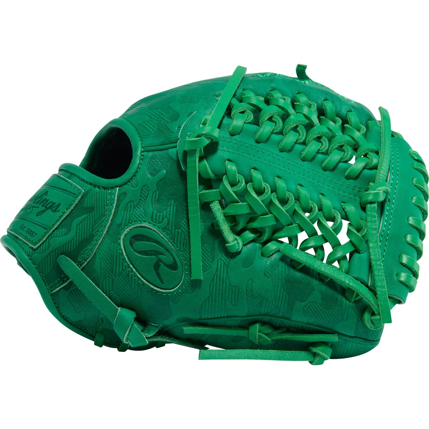 Élégant et sûr, le gant Kelly Green Camo présente un design entièrement monochrome avec un discret motif de camouflage en relief. Construit sur le modèle 206 avec une toile Trap-Eze, il offre une poche plus profonde, parfaite pour les joueurs polyvalents qui ont besoin de contrôle à plusieurs positions.